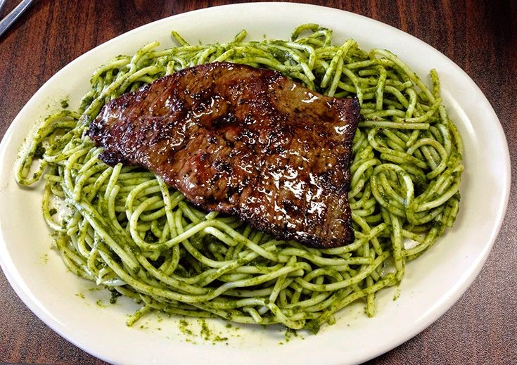 Lo más curioso es que los tallarines verdesaunque se pueden tomar como plato únicosuelen ser la guarnición del plato ya que sesuelen servir con un bistec de ternera, unamilanesa de ternera o de pollo, unos huevosfritos o incluso patatas, haciendo que el platosea de lo más completo